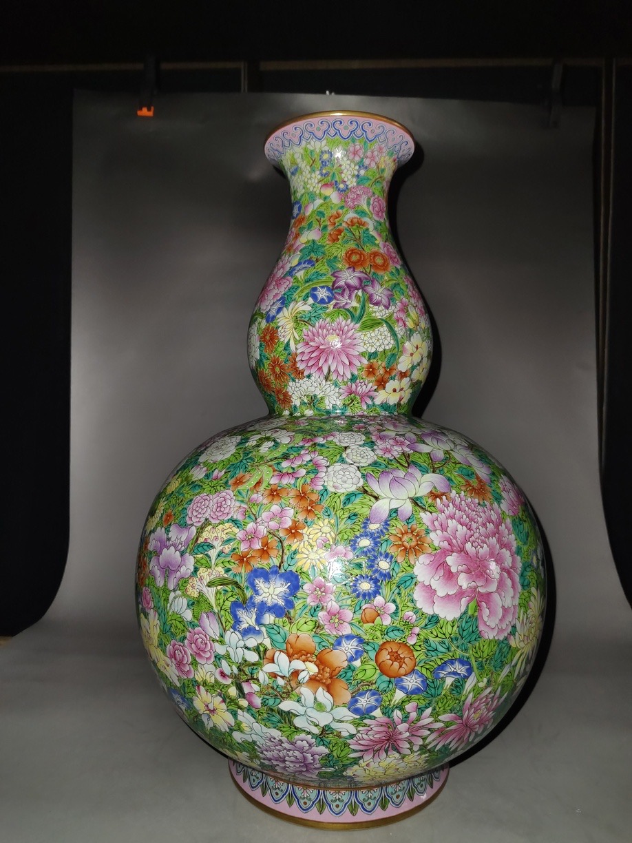 青花粉彩百花不落地葫蘆瓶