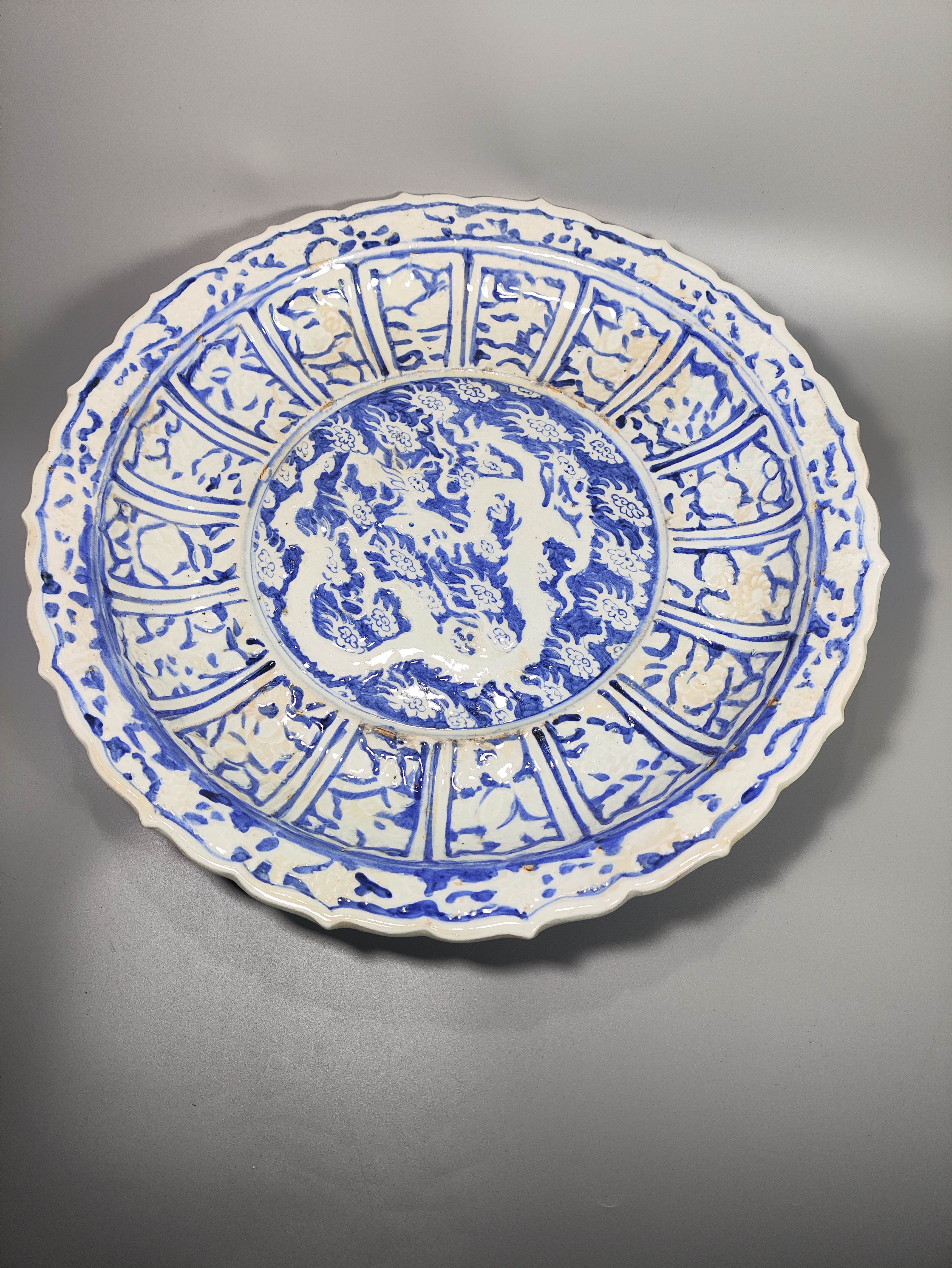 留白青花龙纹葵口盘