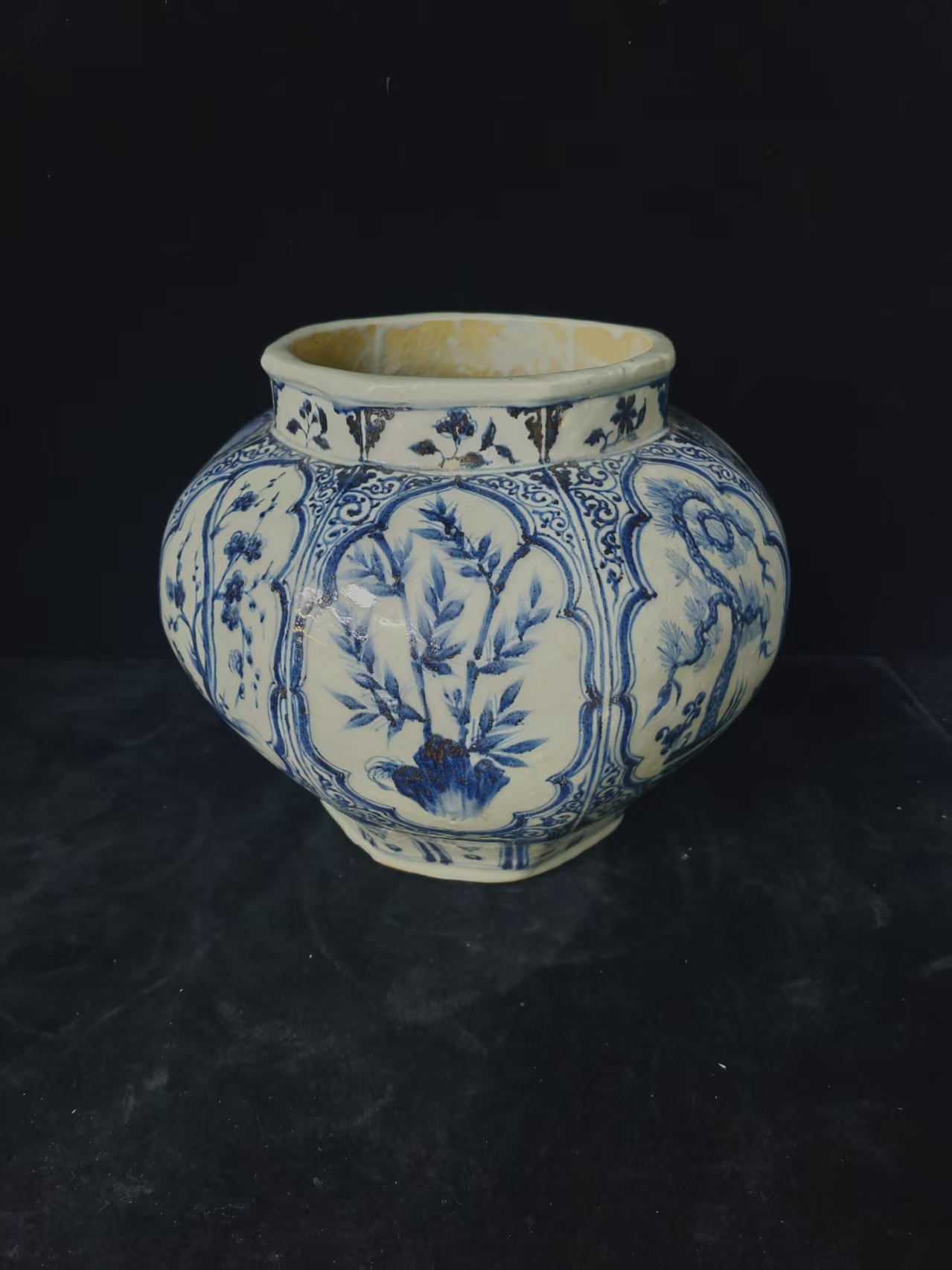 元-青花开光八棱松竹梅大罐