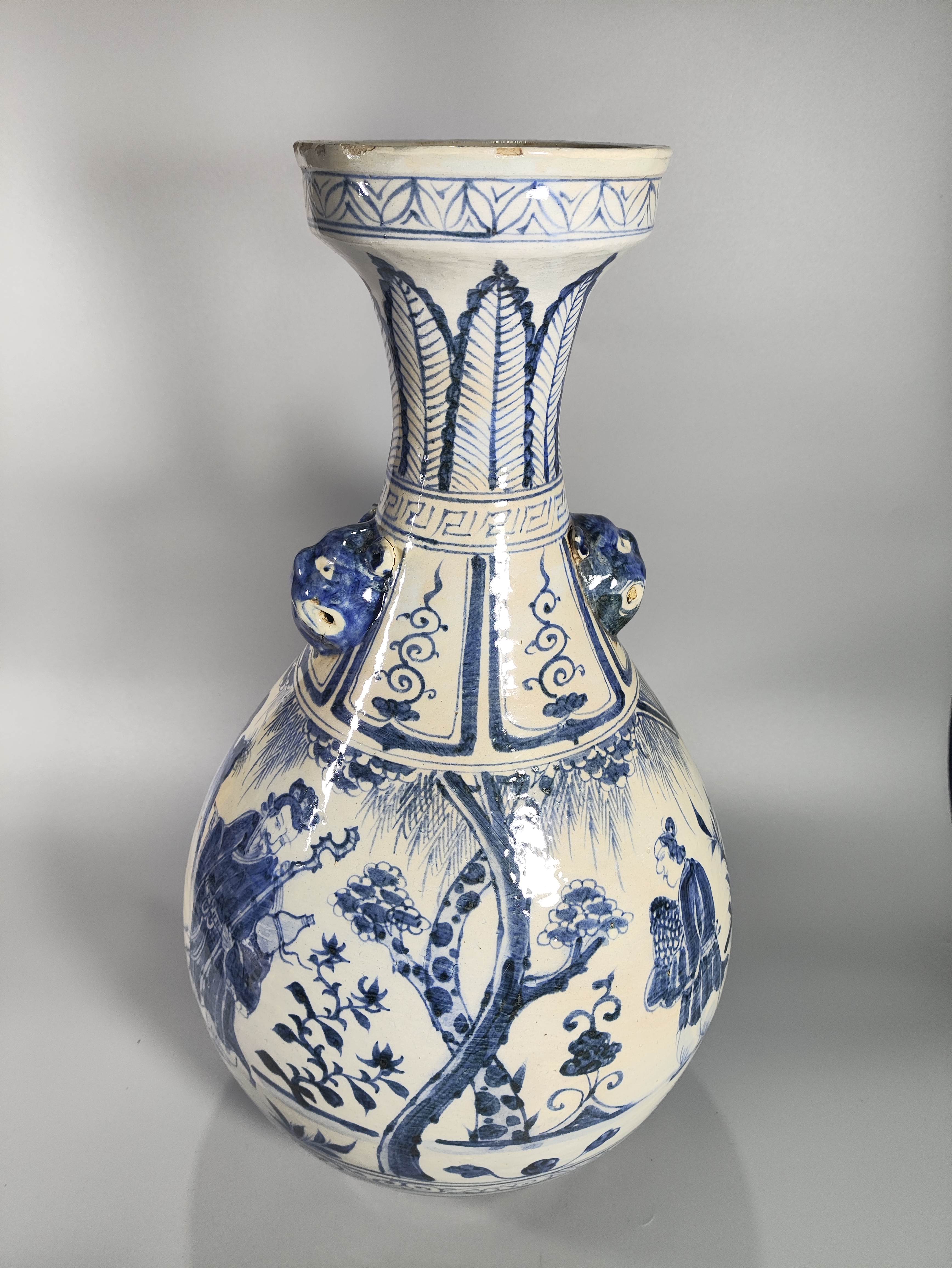 元代青花人物首耳瓶