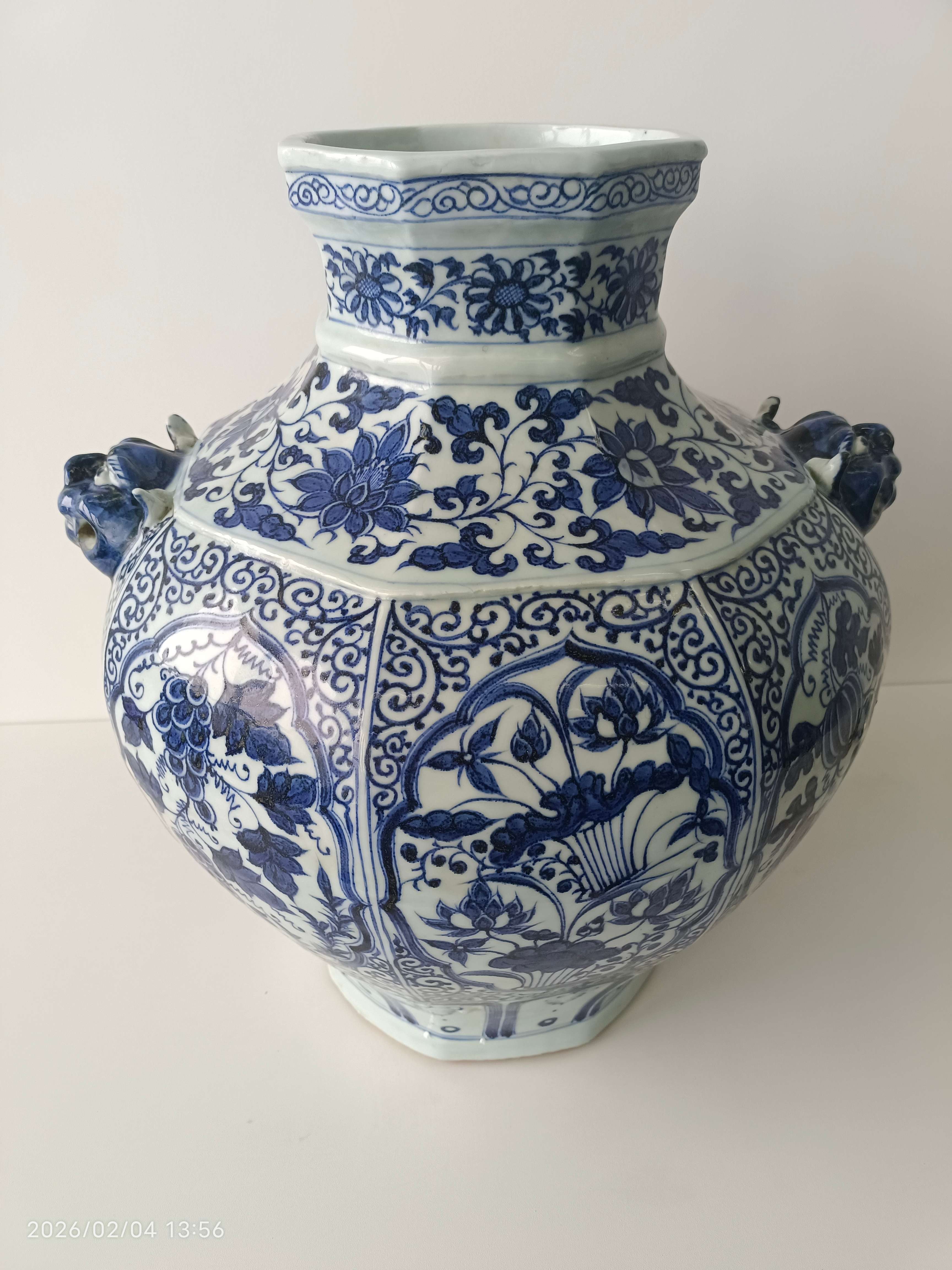 元代青花缠枝花卉纹兽耳八方罐