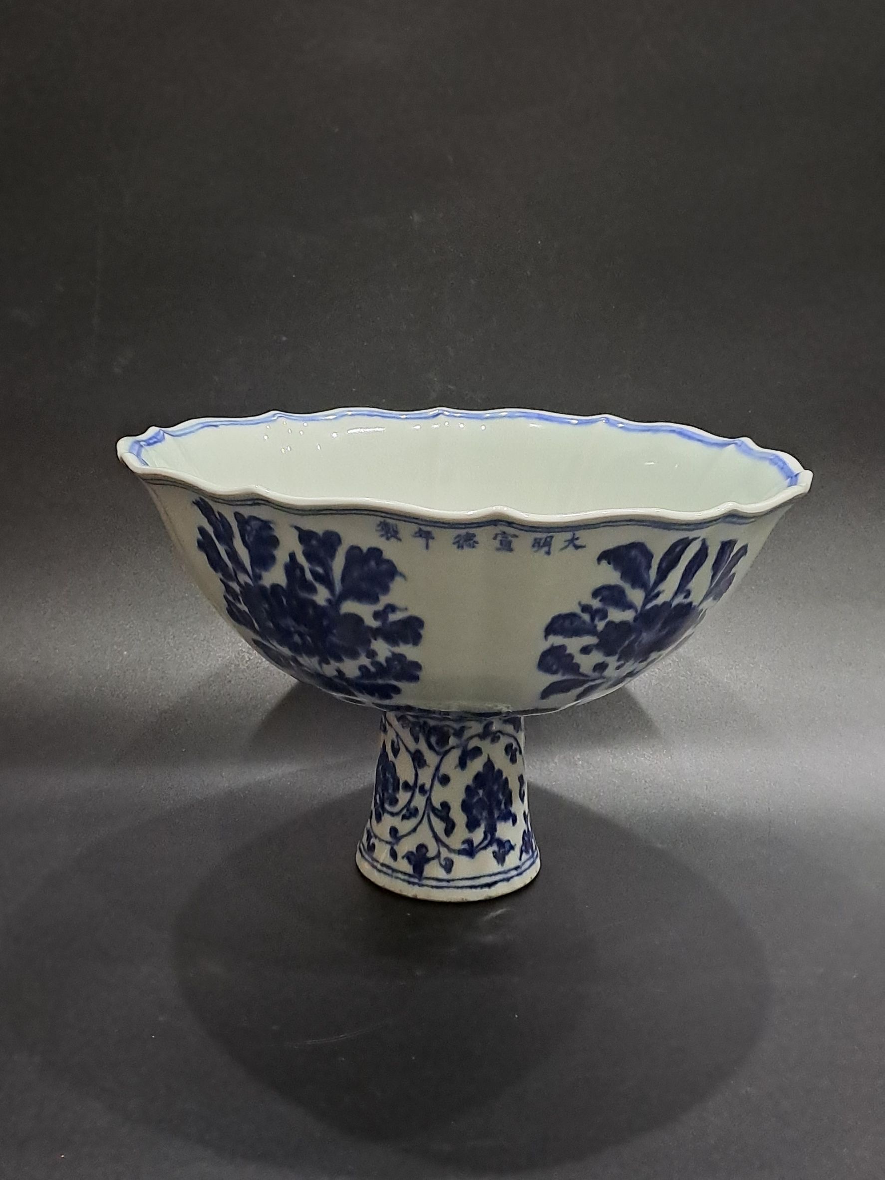 宣德青花花卉紋十棱高足碗