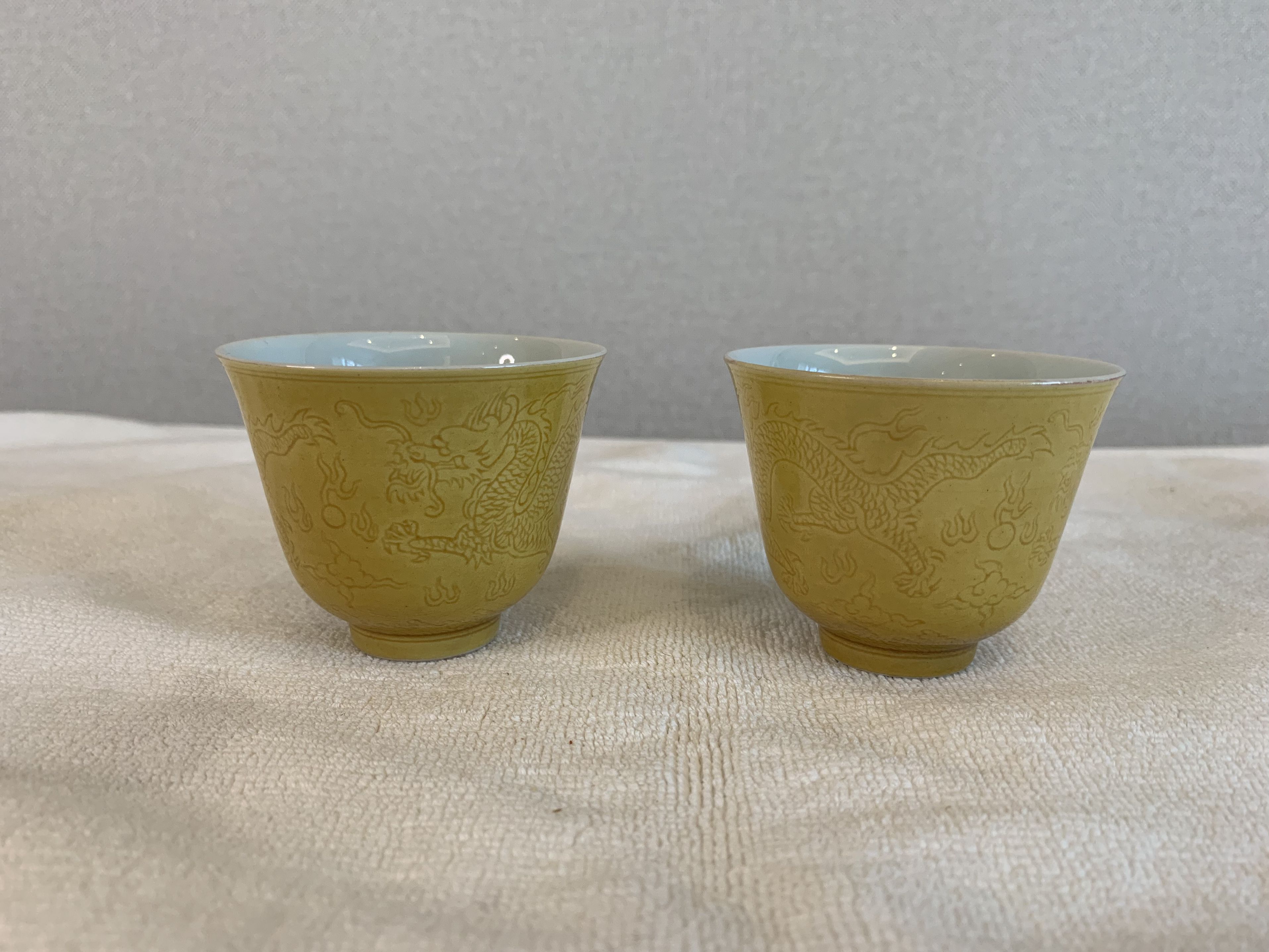 清康熙黄釉暗刻龙纹杯