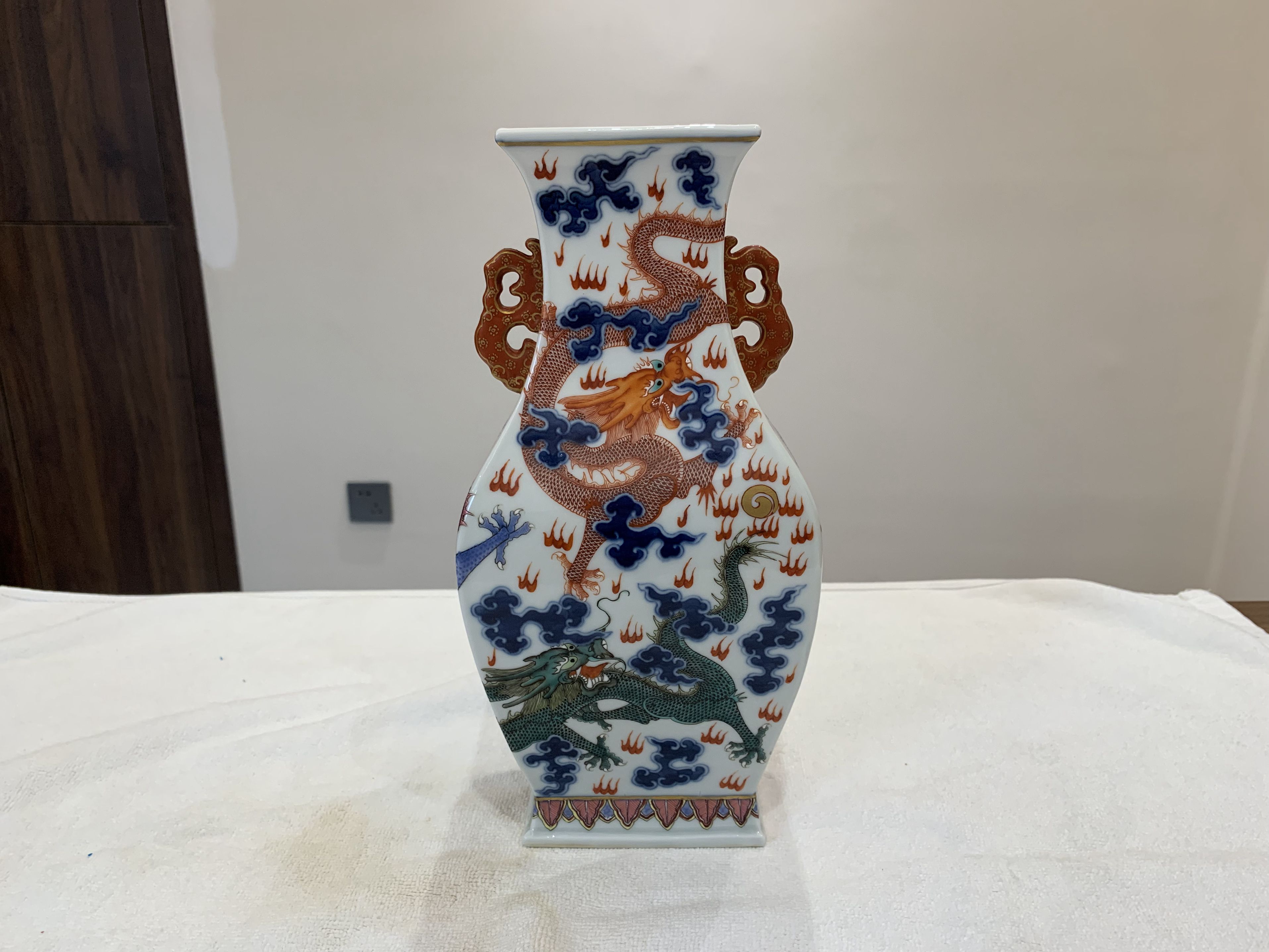 清乾隆云龙纹双耳方瓶
