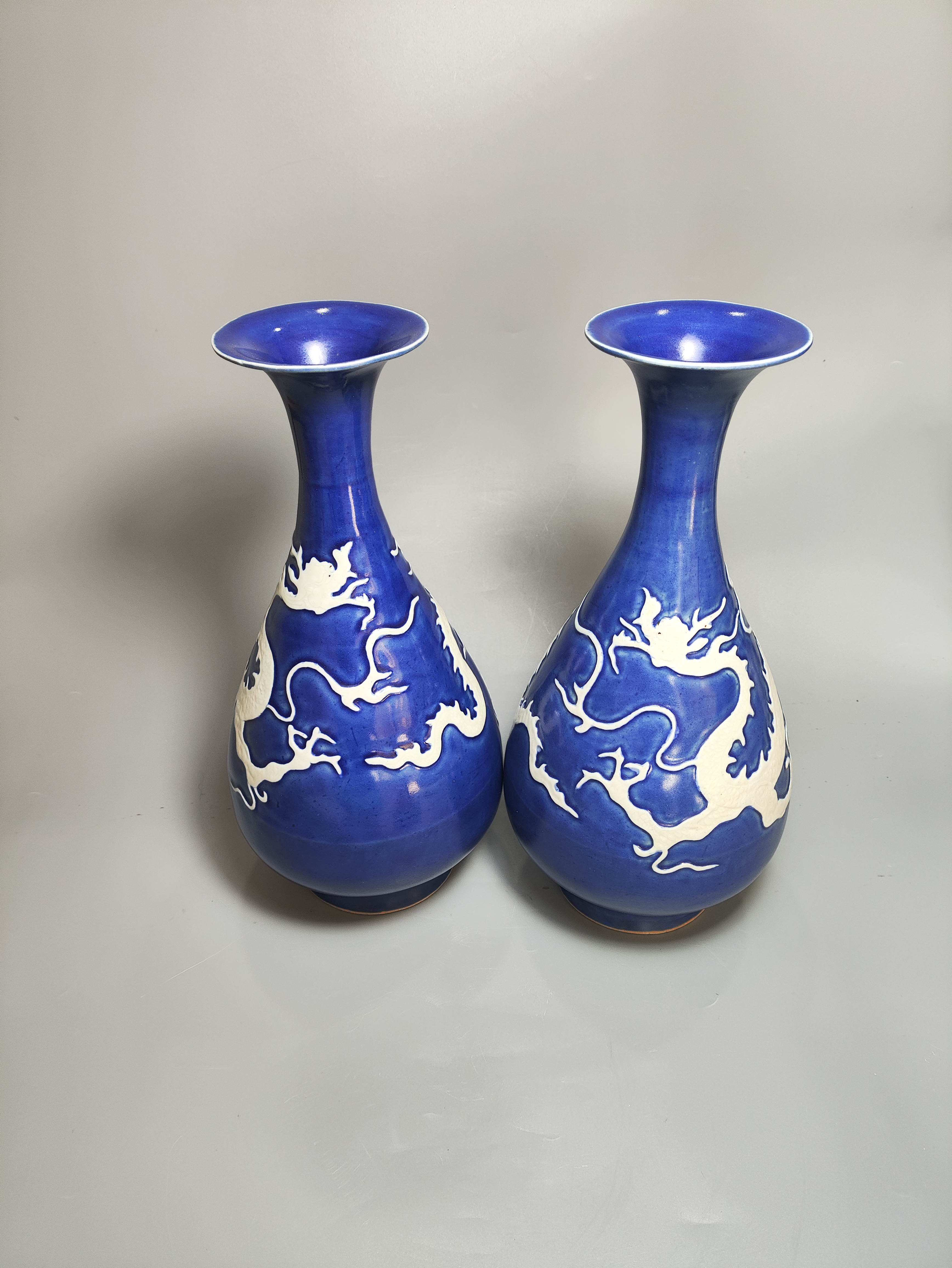 元蓝釉留白龙纹玉春瓶.一对