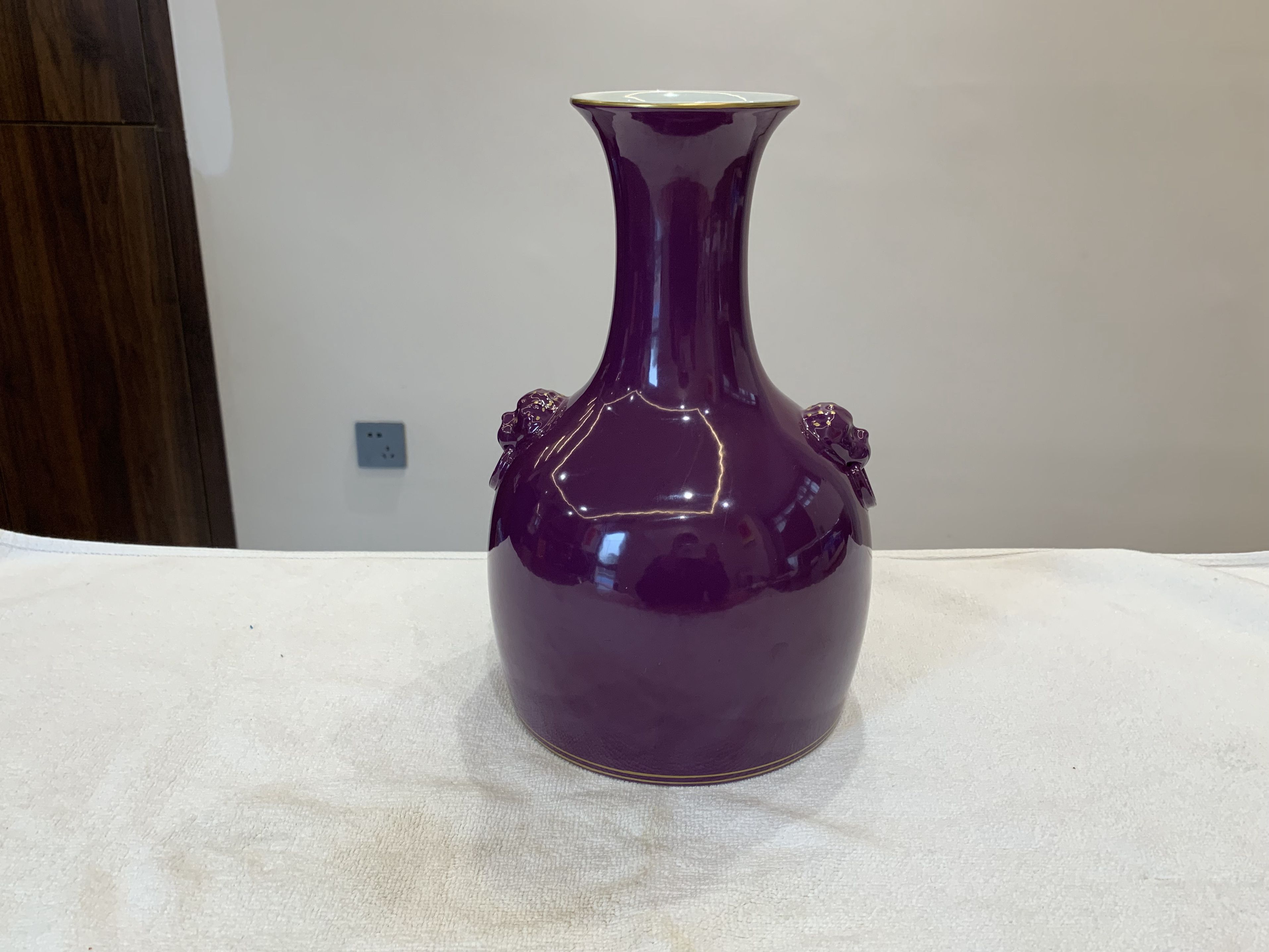 清雍正紫釉描金兽耳赏瓶