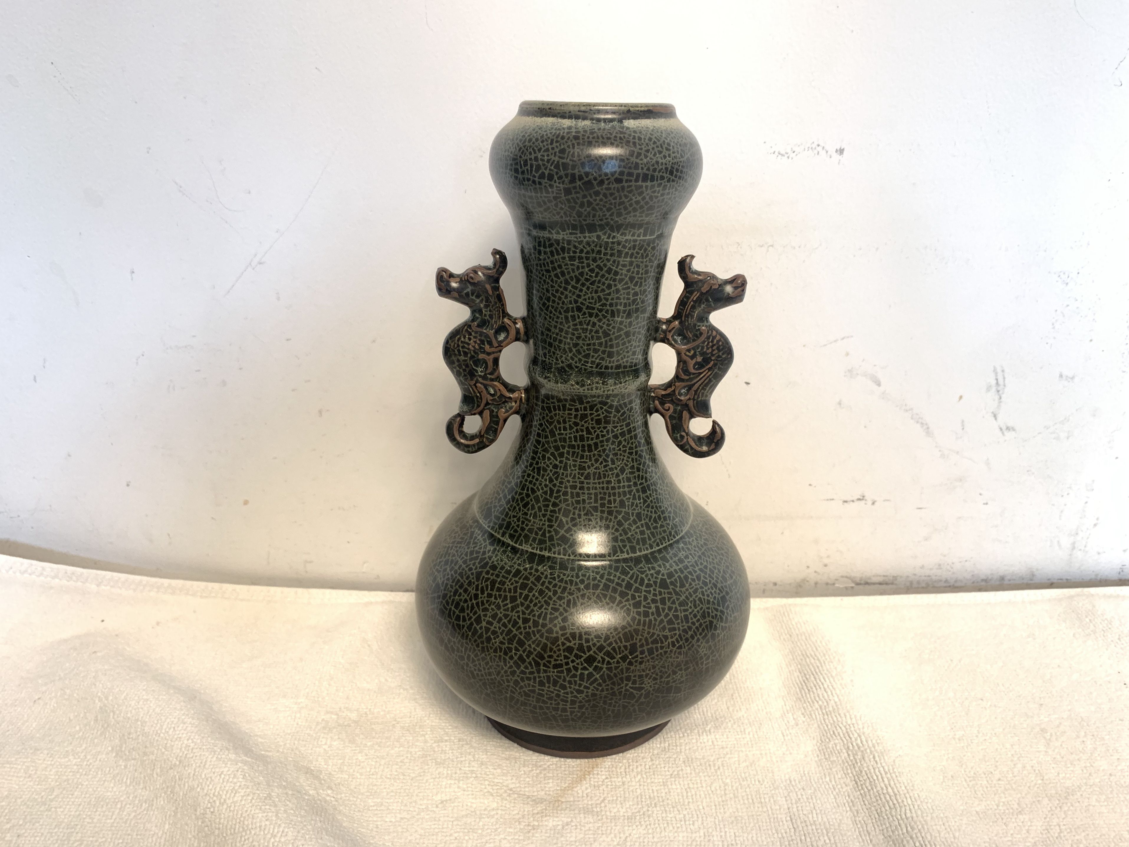 南宋官窑青瓷双耳瓶(大宋官窑款)