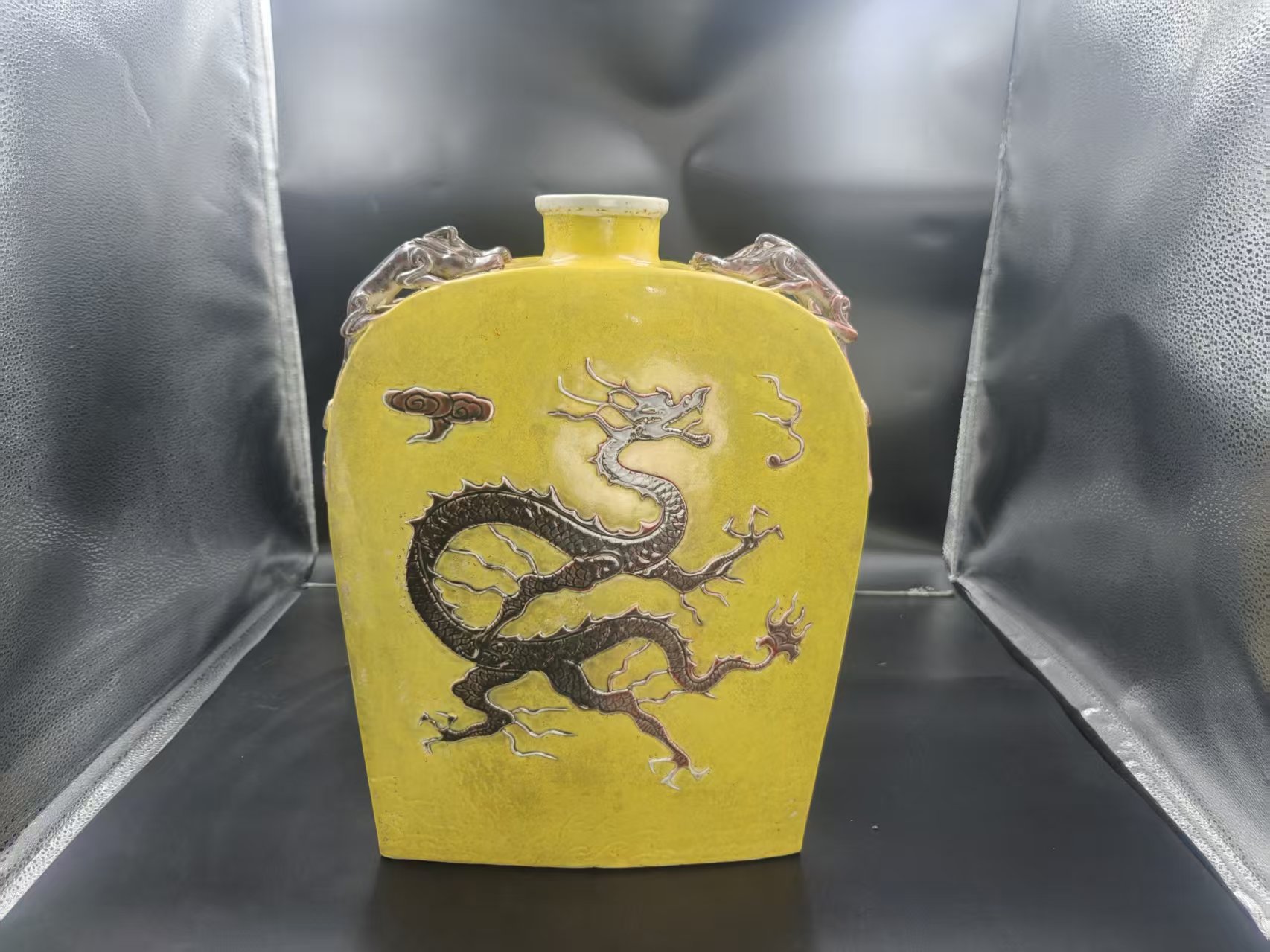 元黄釉褐龙扁壶