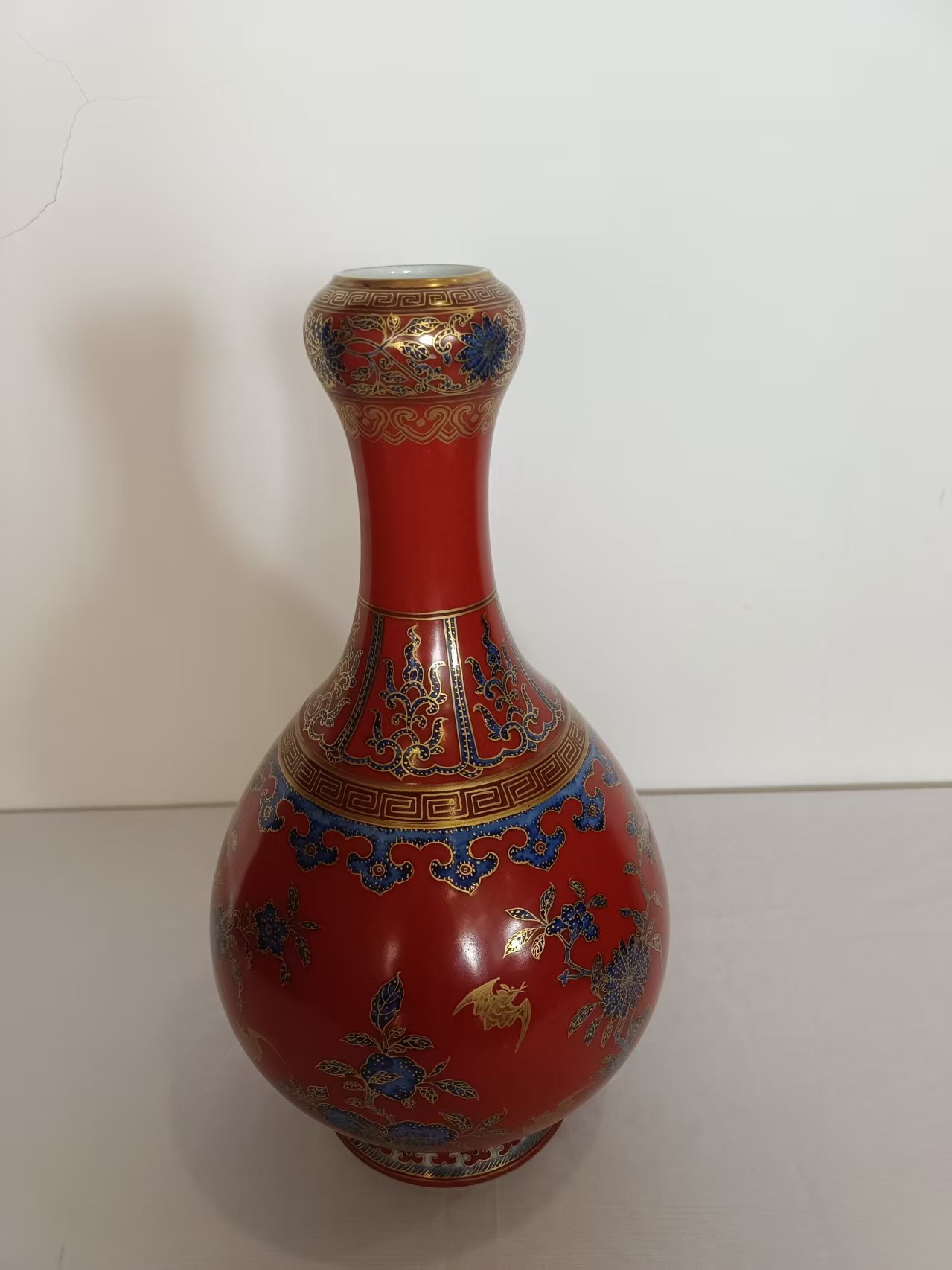 清乾隆描金青花蒜头瓶