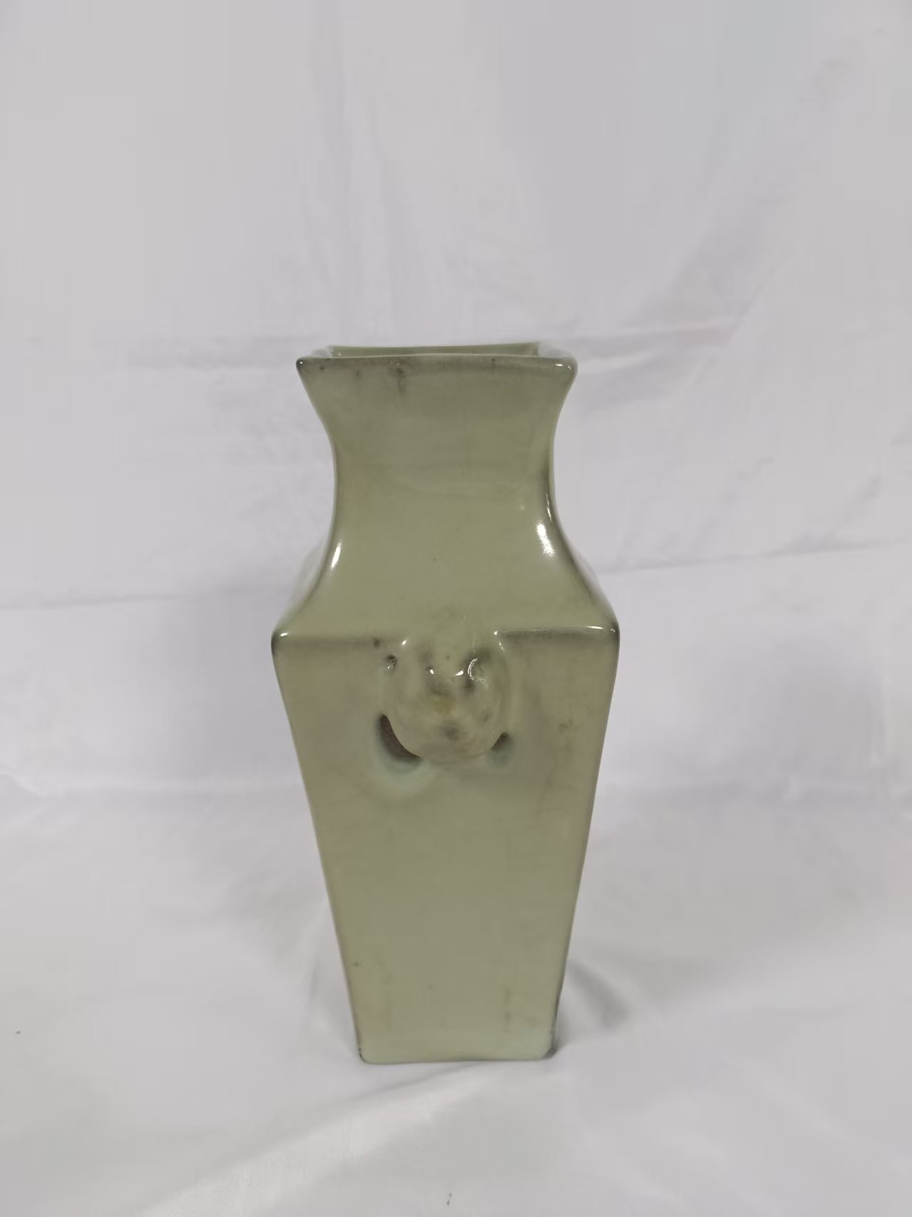 北宋官窑青釉镶银口贯耳瓶