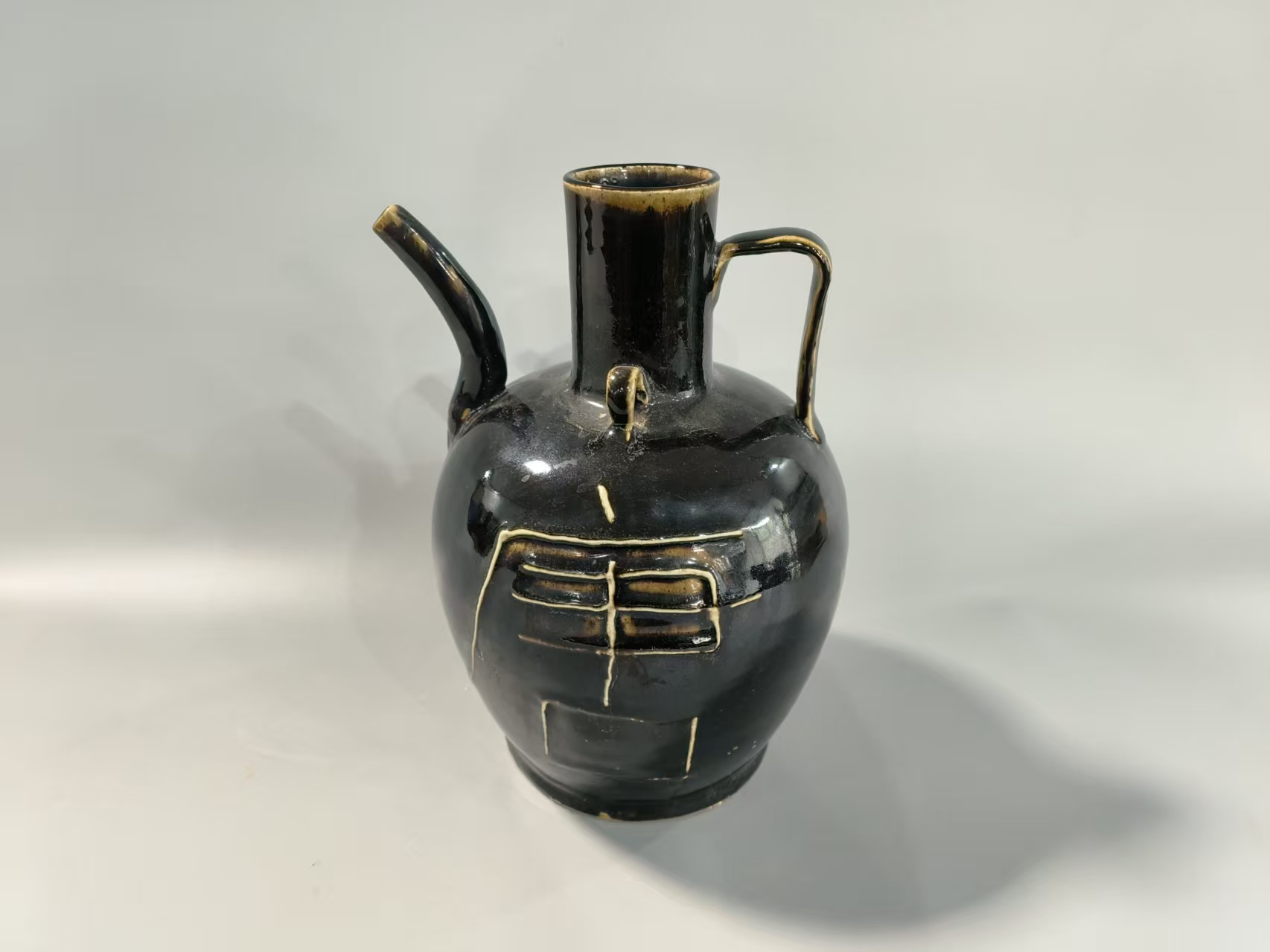 黑釉刻字执壶