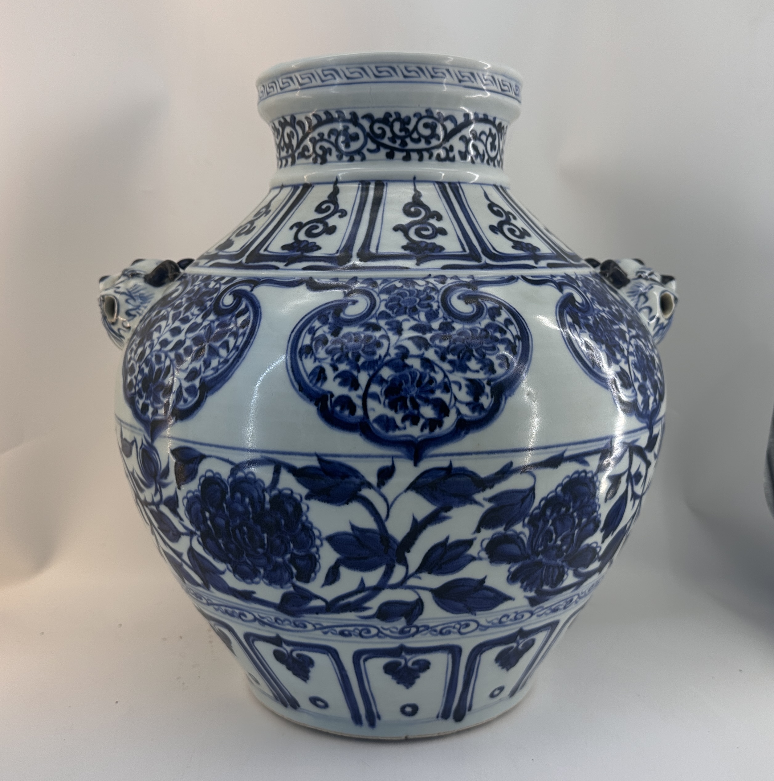 元代霁蓝釉白龙纹兽耳瓶