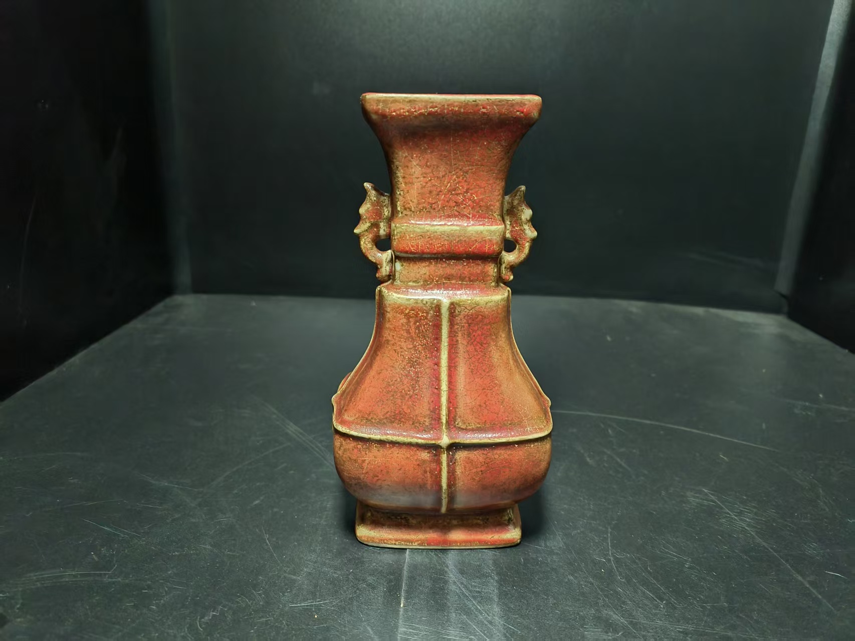 柴窑红釉双耳盘口尊