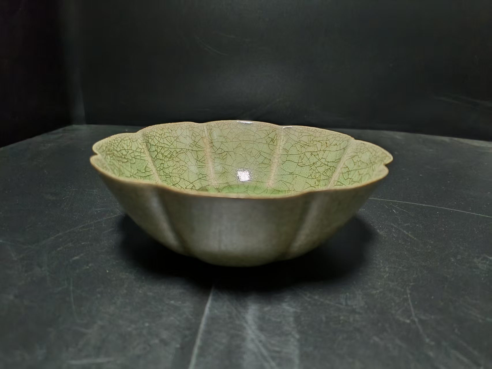 青瓷花瓣纹花口洗