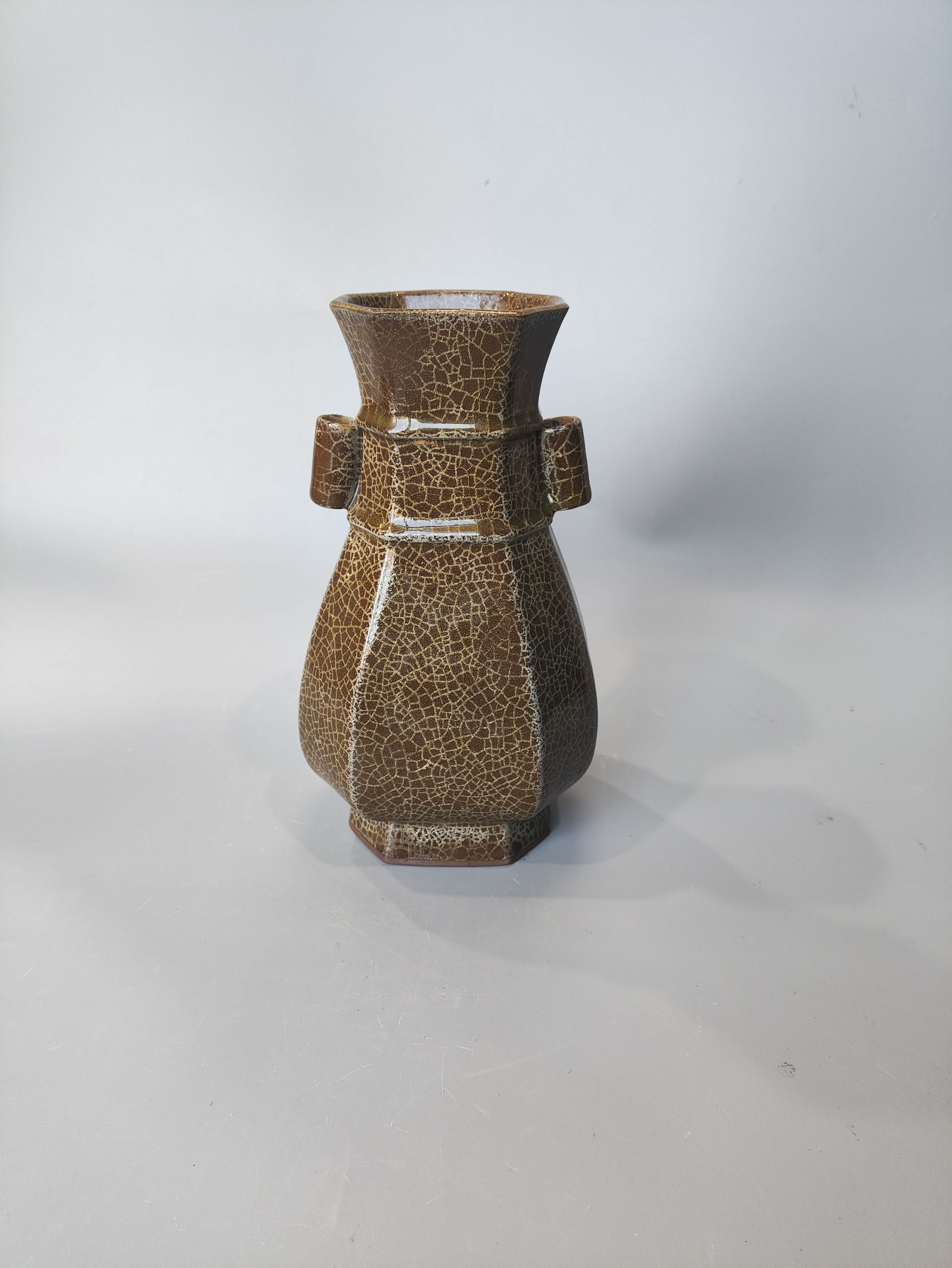 宋八棱双耳哈密纹象耳瓶溪口官窑款