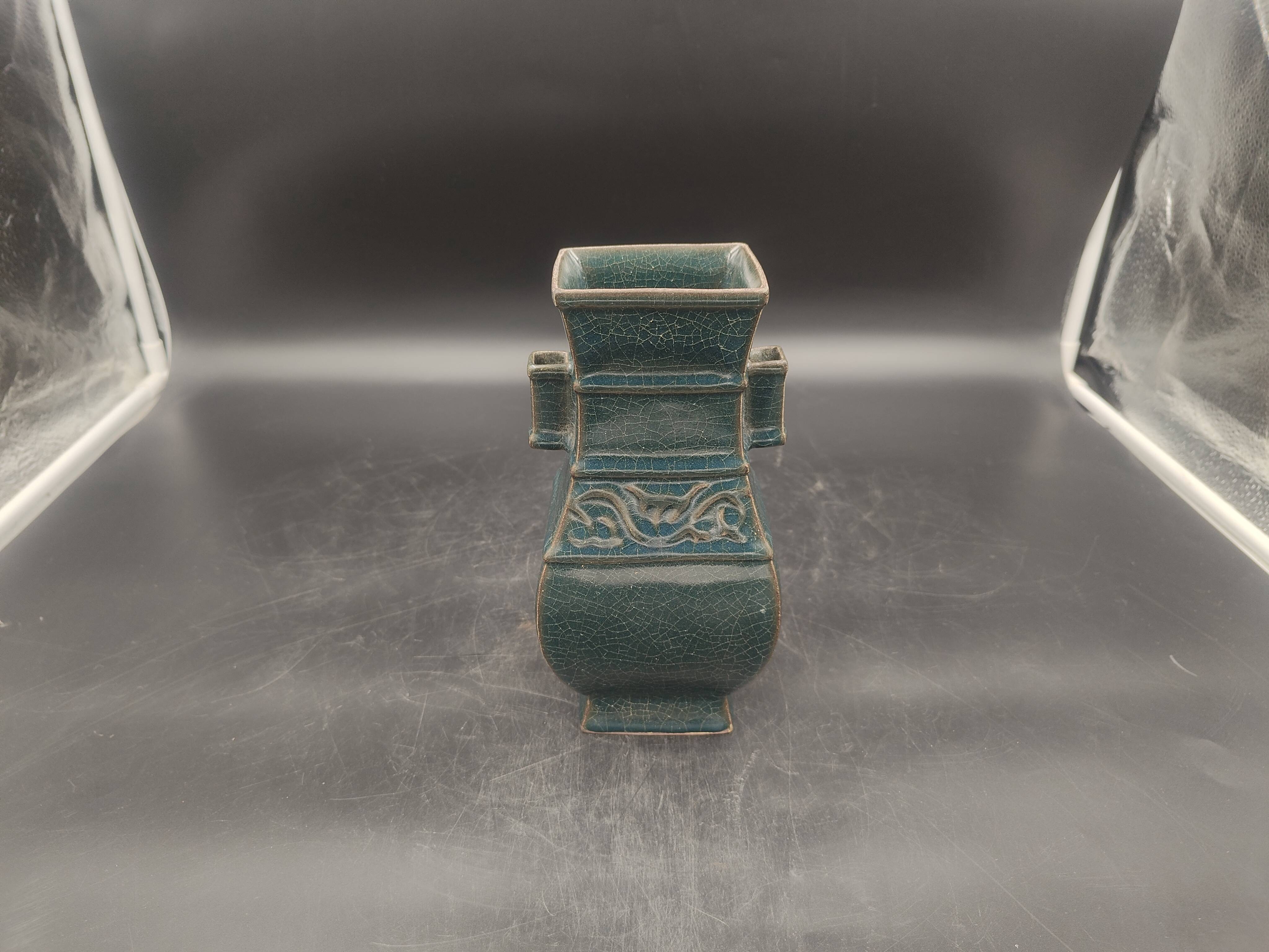 宋八棱双耳哈密纹象耳瓶溪口官窑款