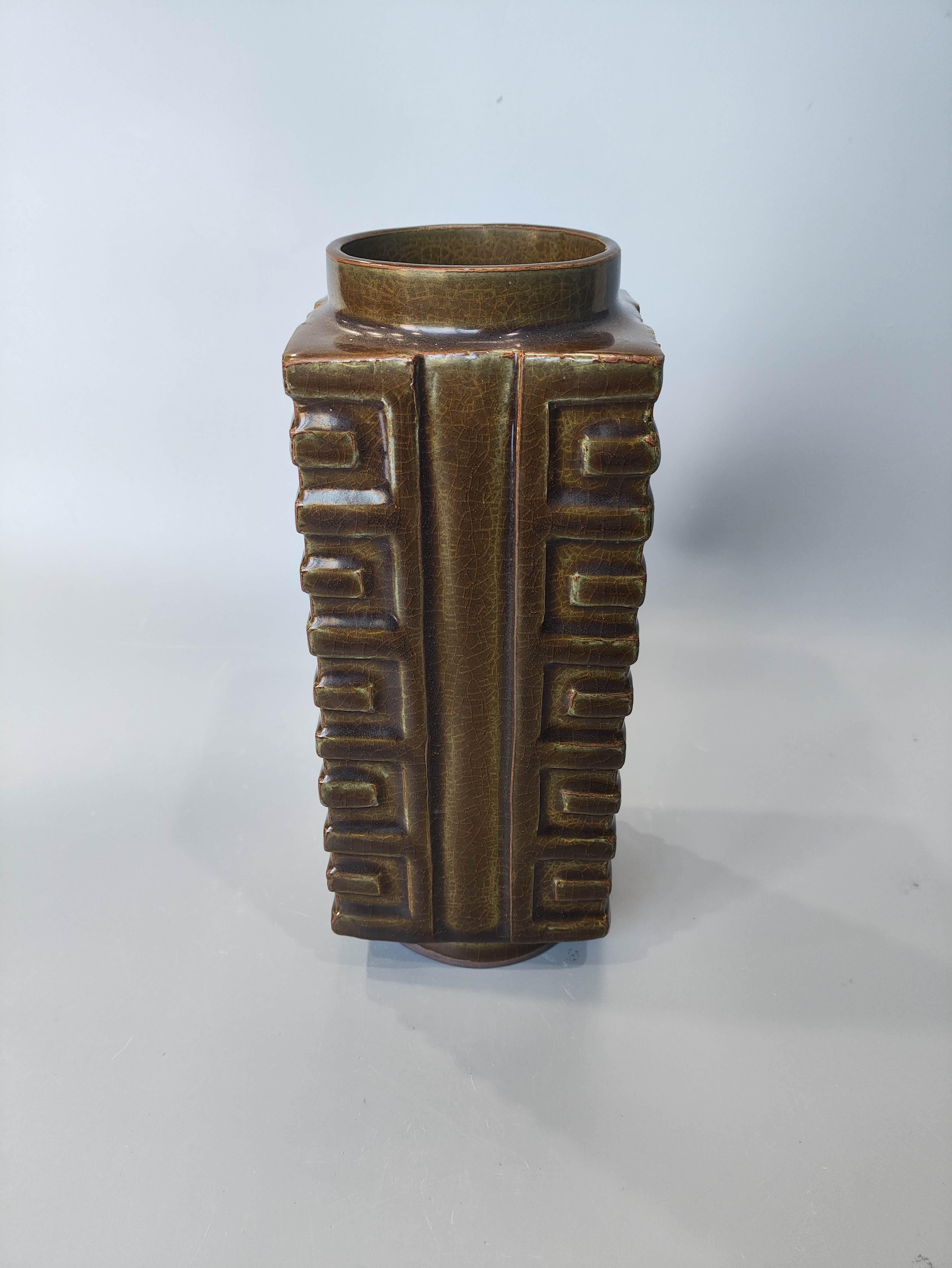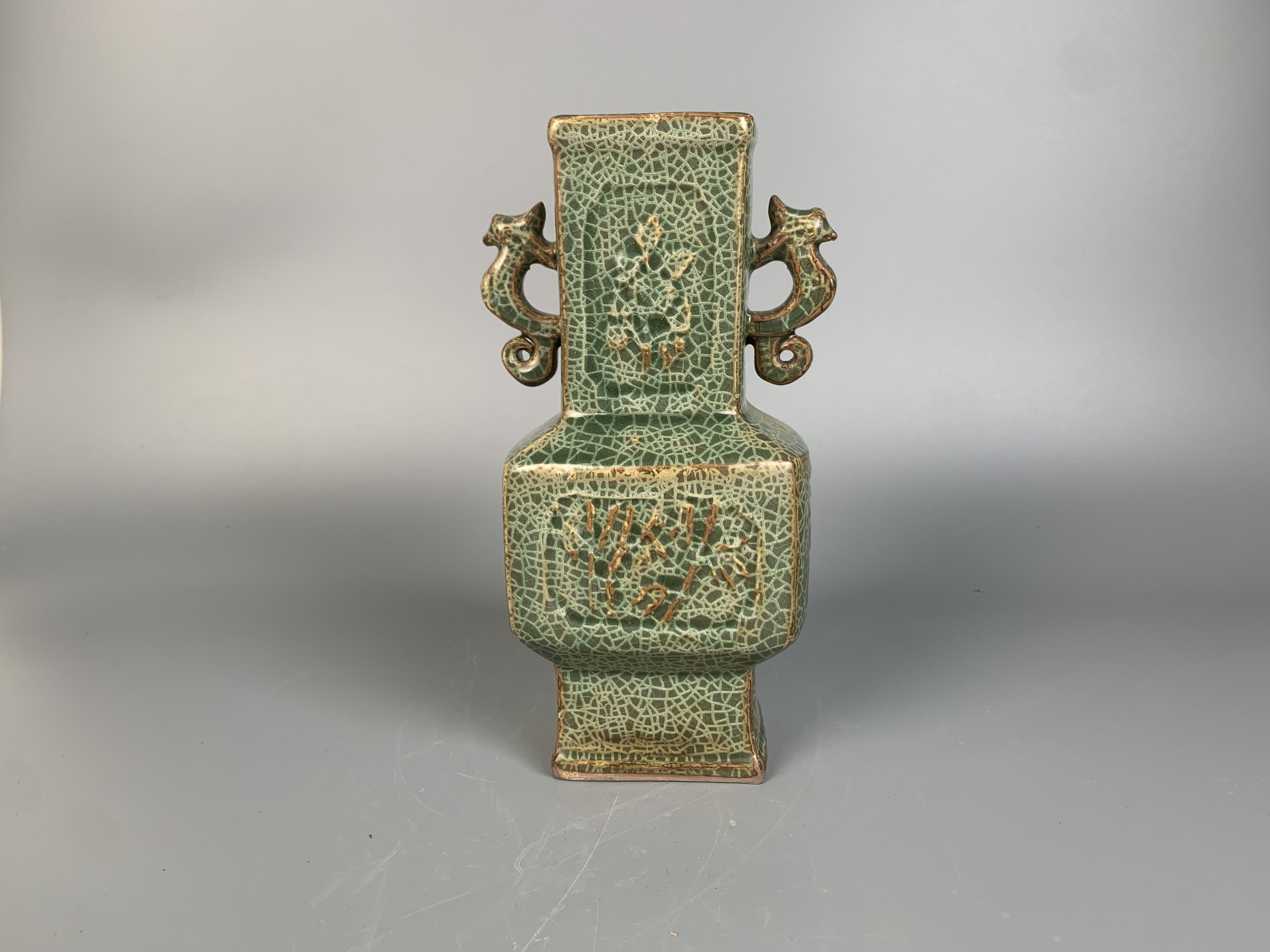 南宋溪口窑方口双龙方型瓶