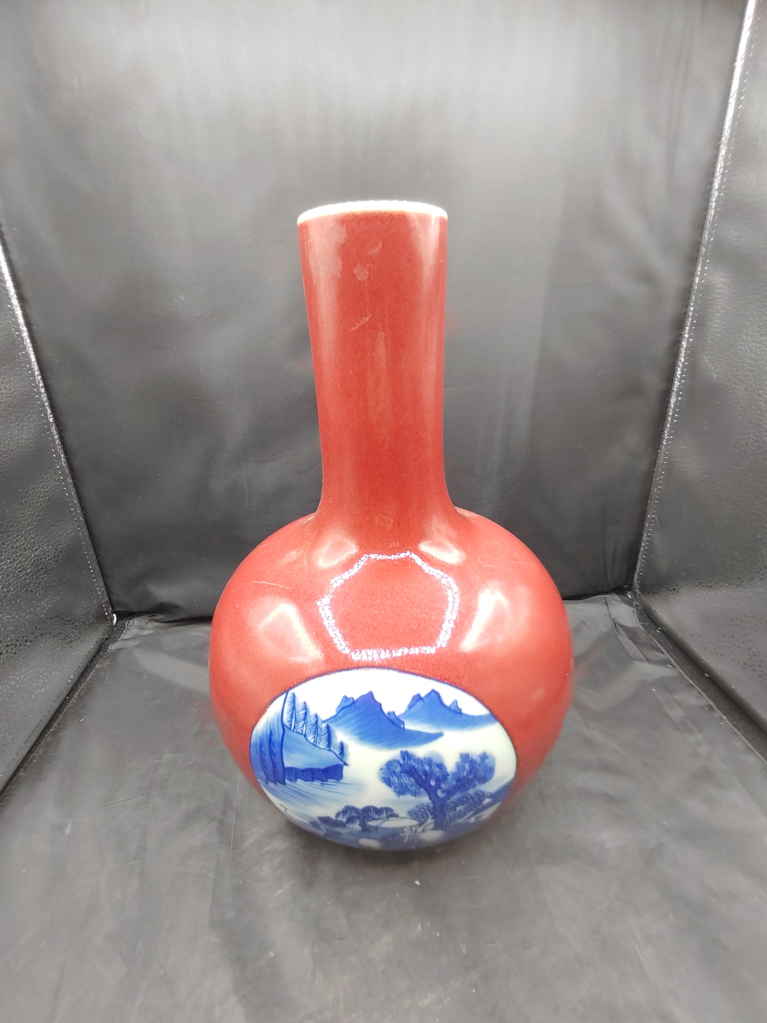 黄地粉彩婴戏纹长颈瓶(柴窑)