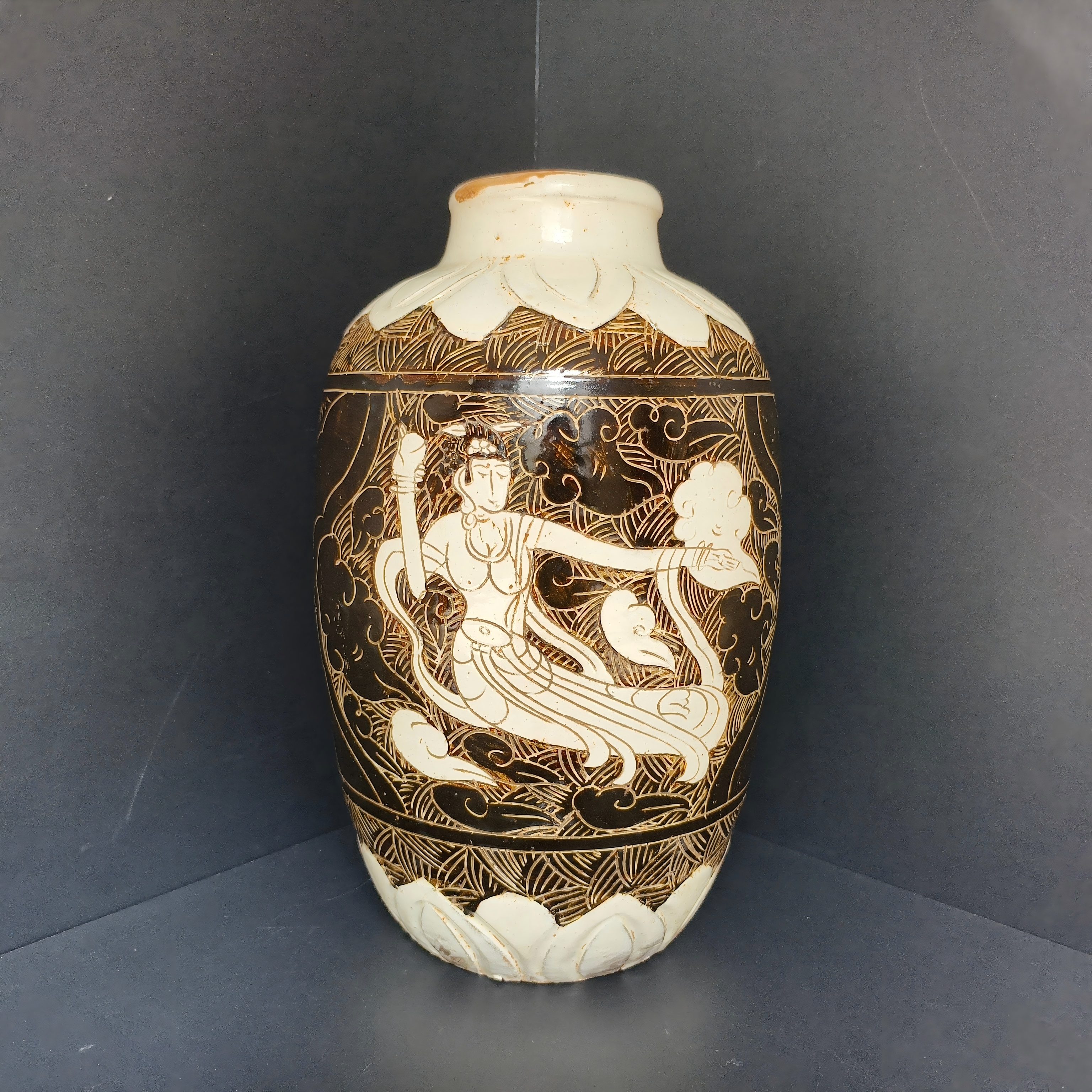 宋代吉州窑玳瑁釉梅花纹梅瓶