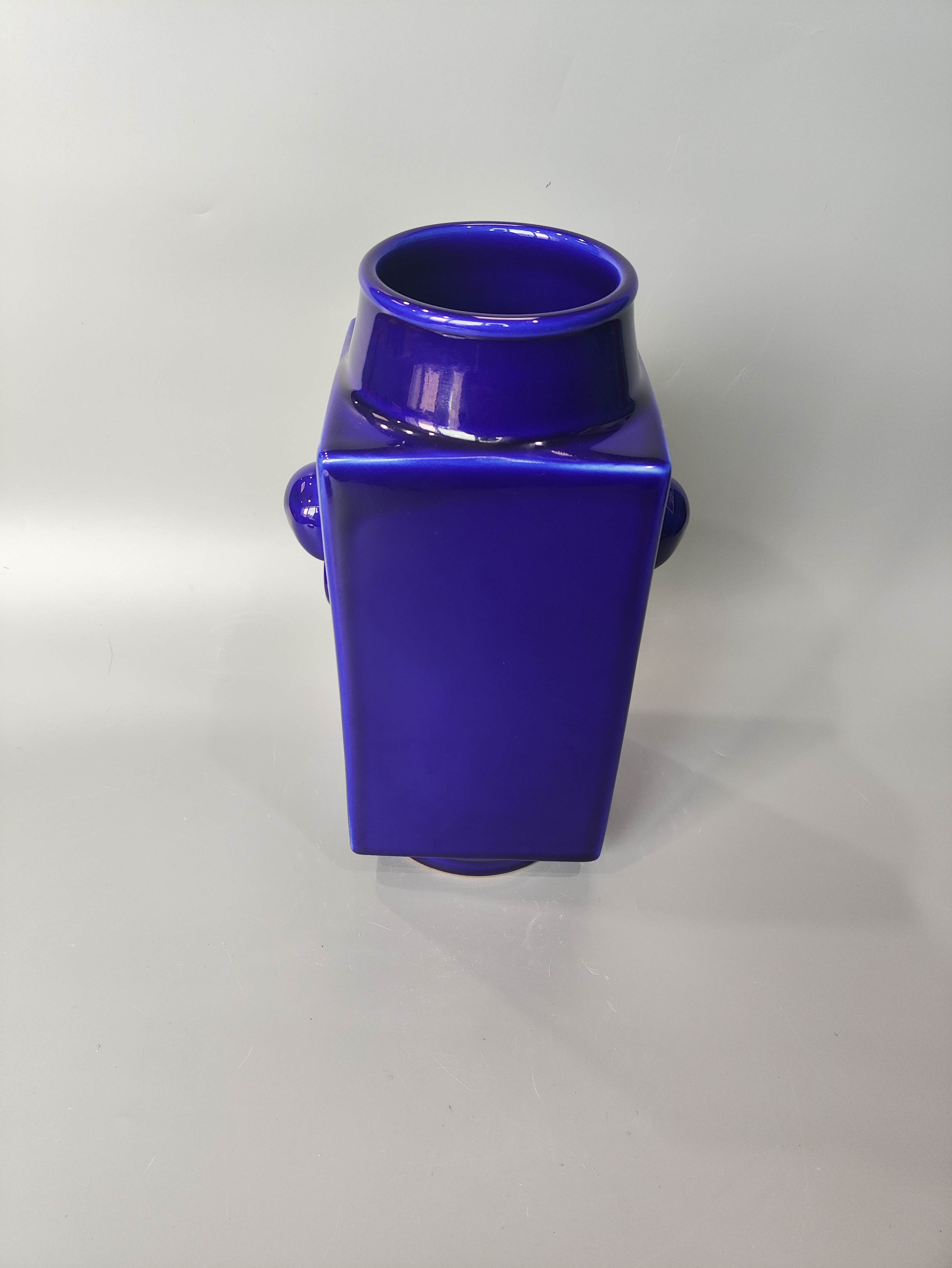 清宝石蓝釉四方双耳琮子瓶大清乾隆年制款