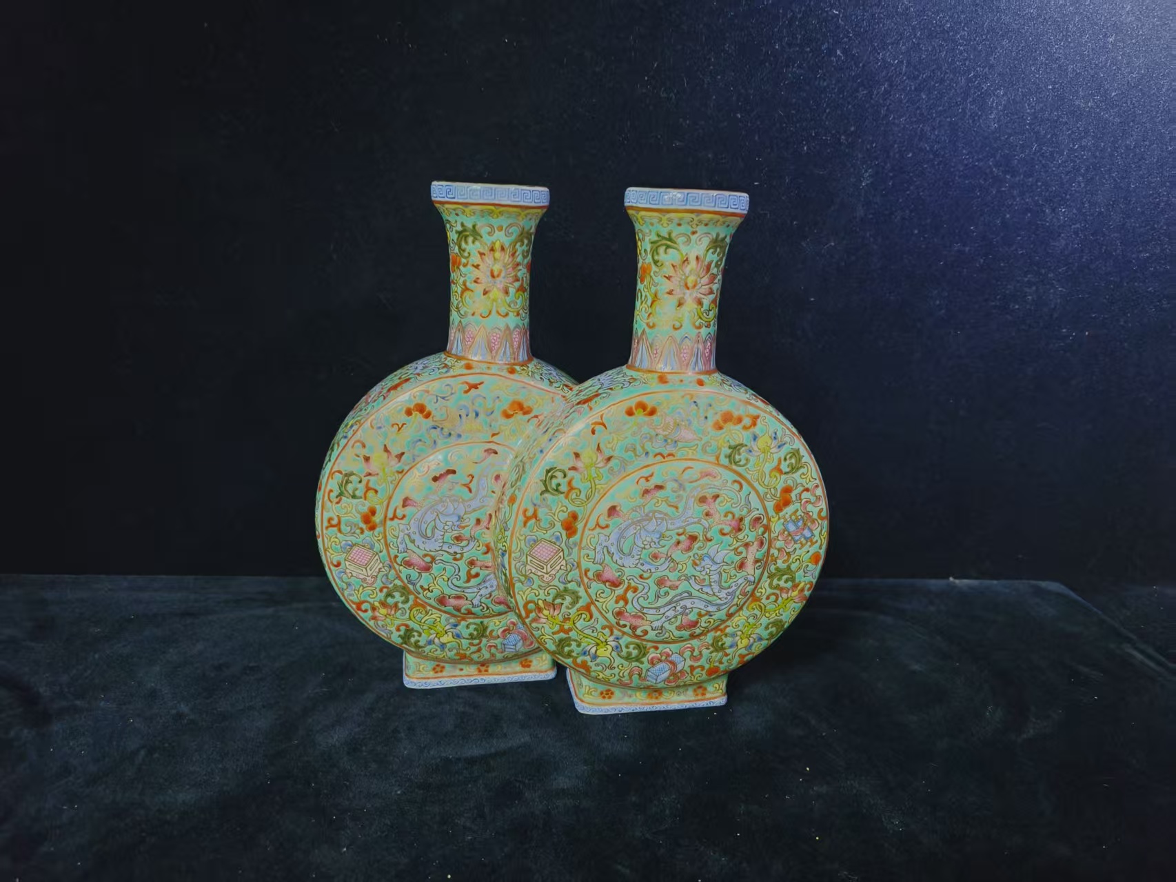 清-乾隆珐琅彩花卉描金龙纹双连瓶