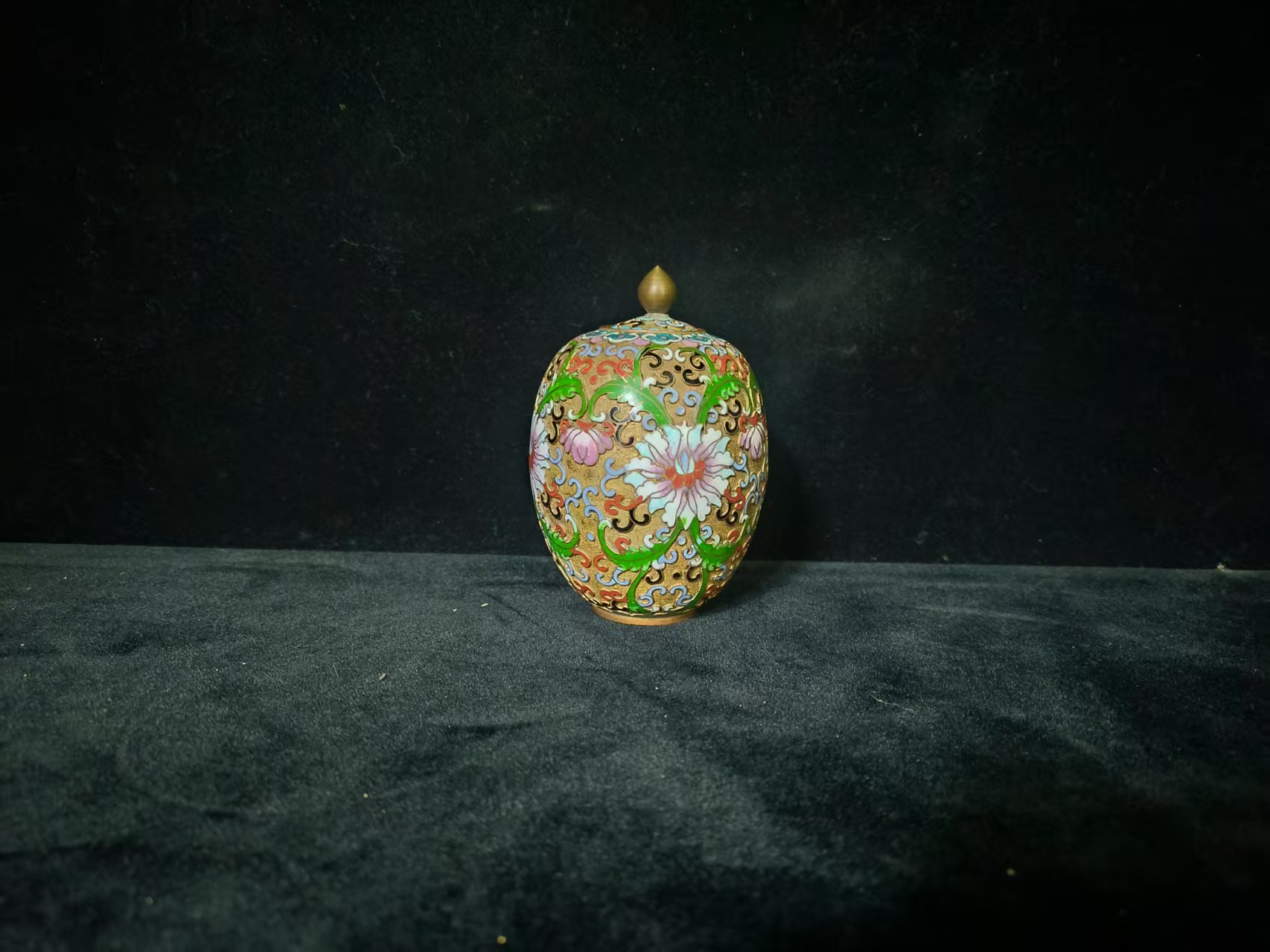 铜胎掐丝珐琅彩浮雕花卉小盖罐