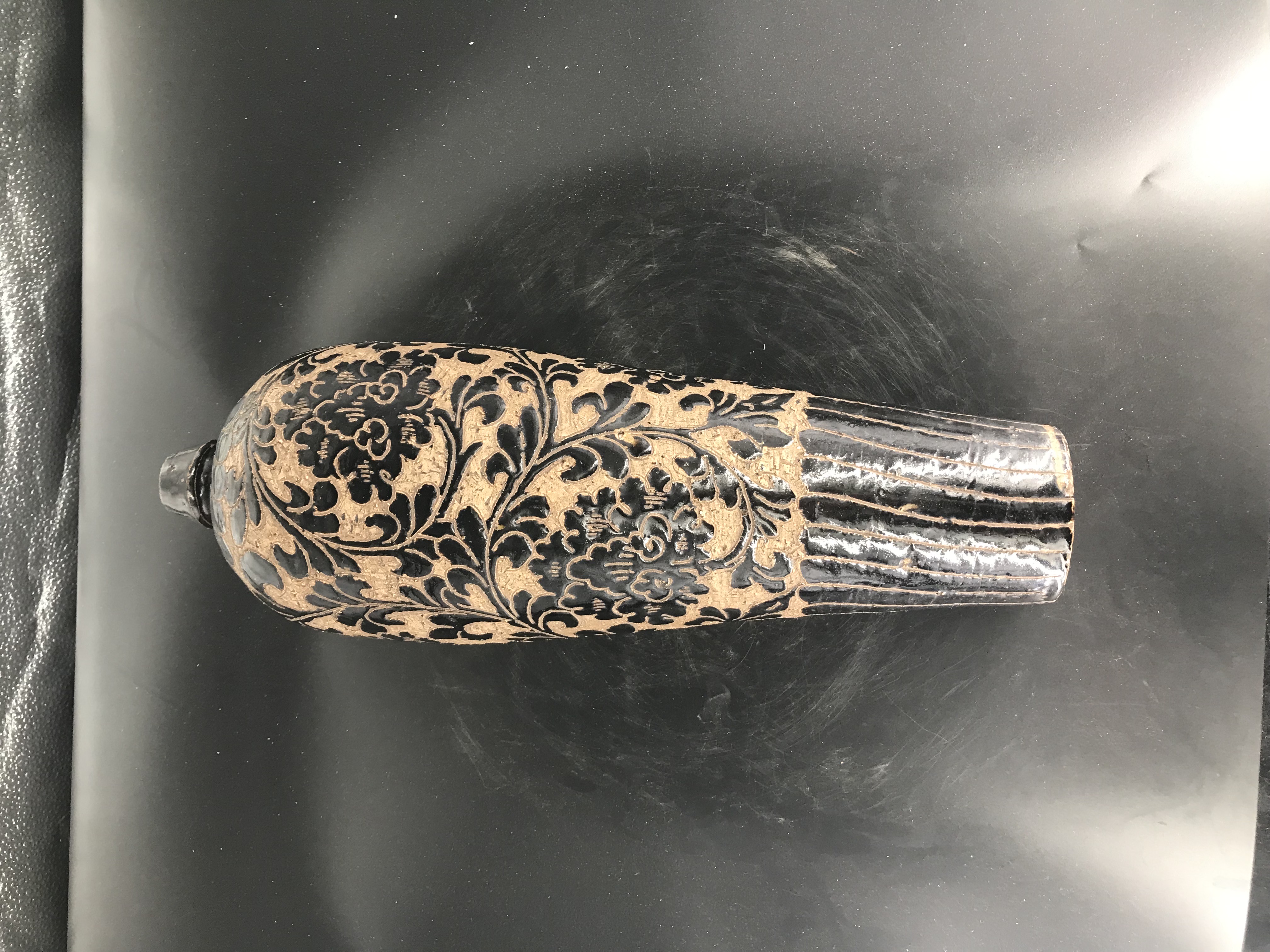 宋磁州窯刻花雞腿瓶