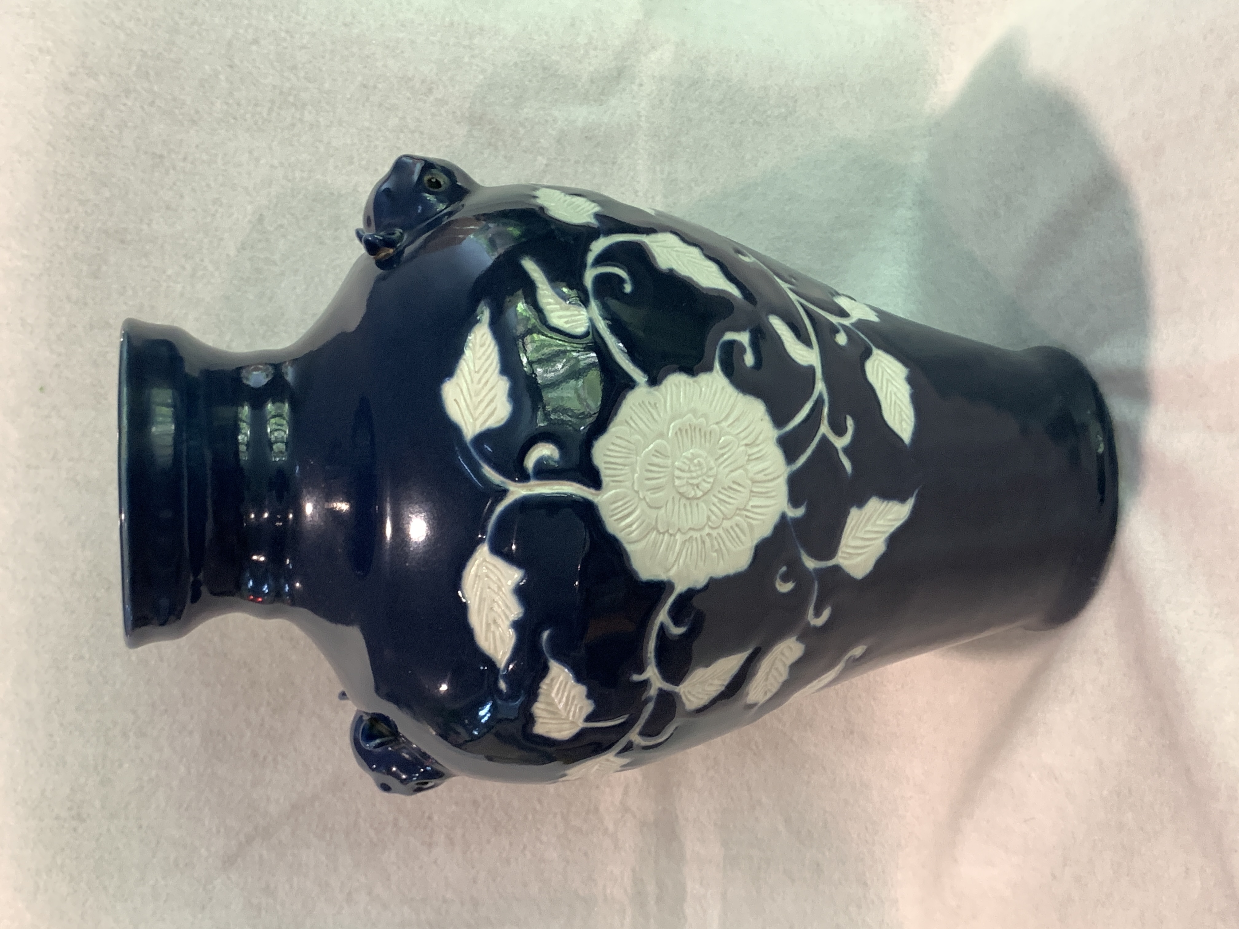 元霽藍白花牡丹瑞獸雙獸首瓶