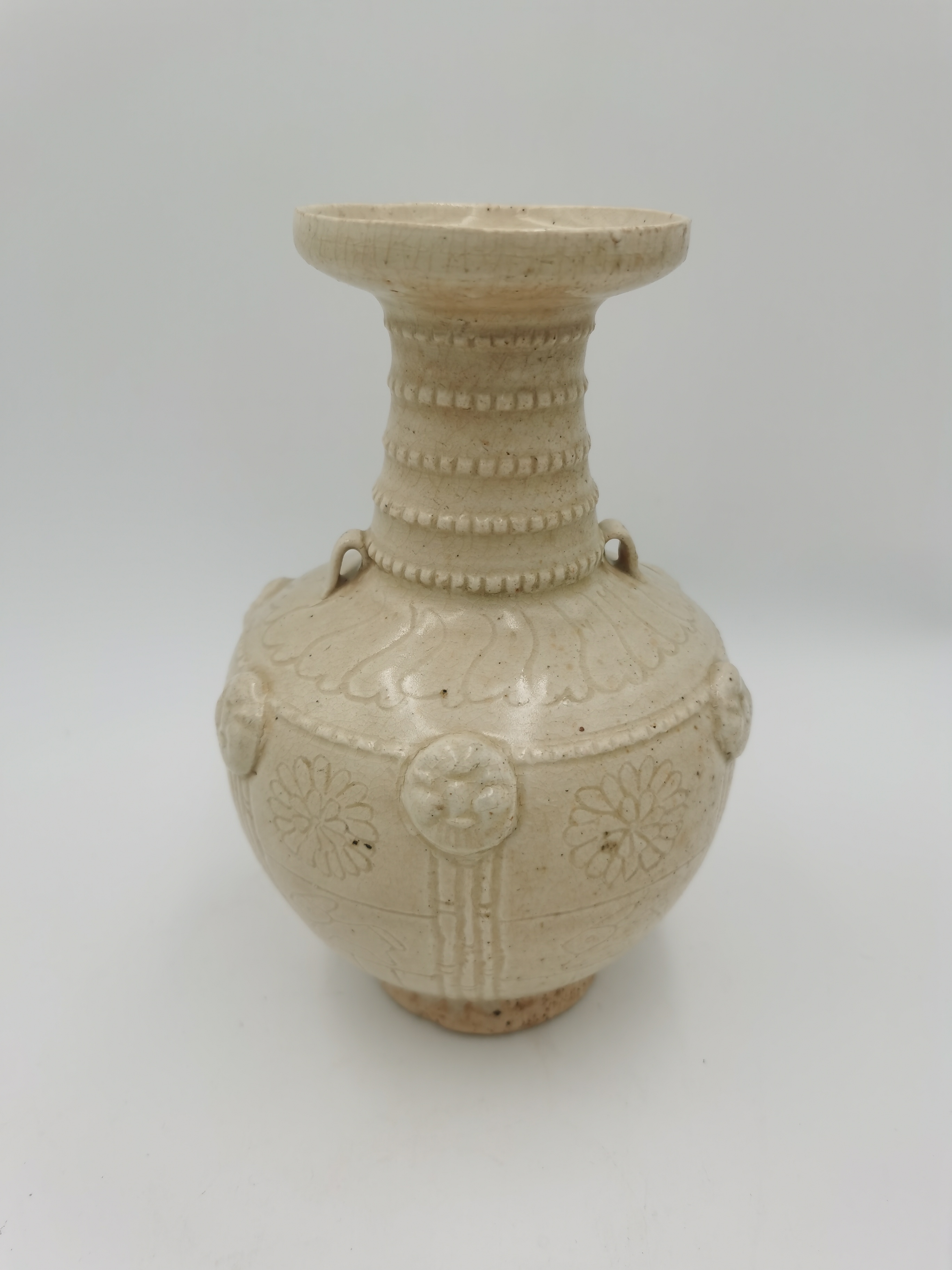 湘湖窑贴塑刻花盘口瓶
