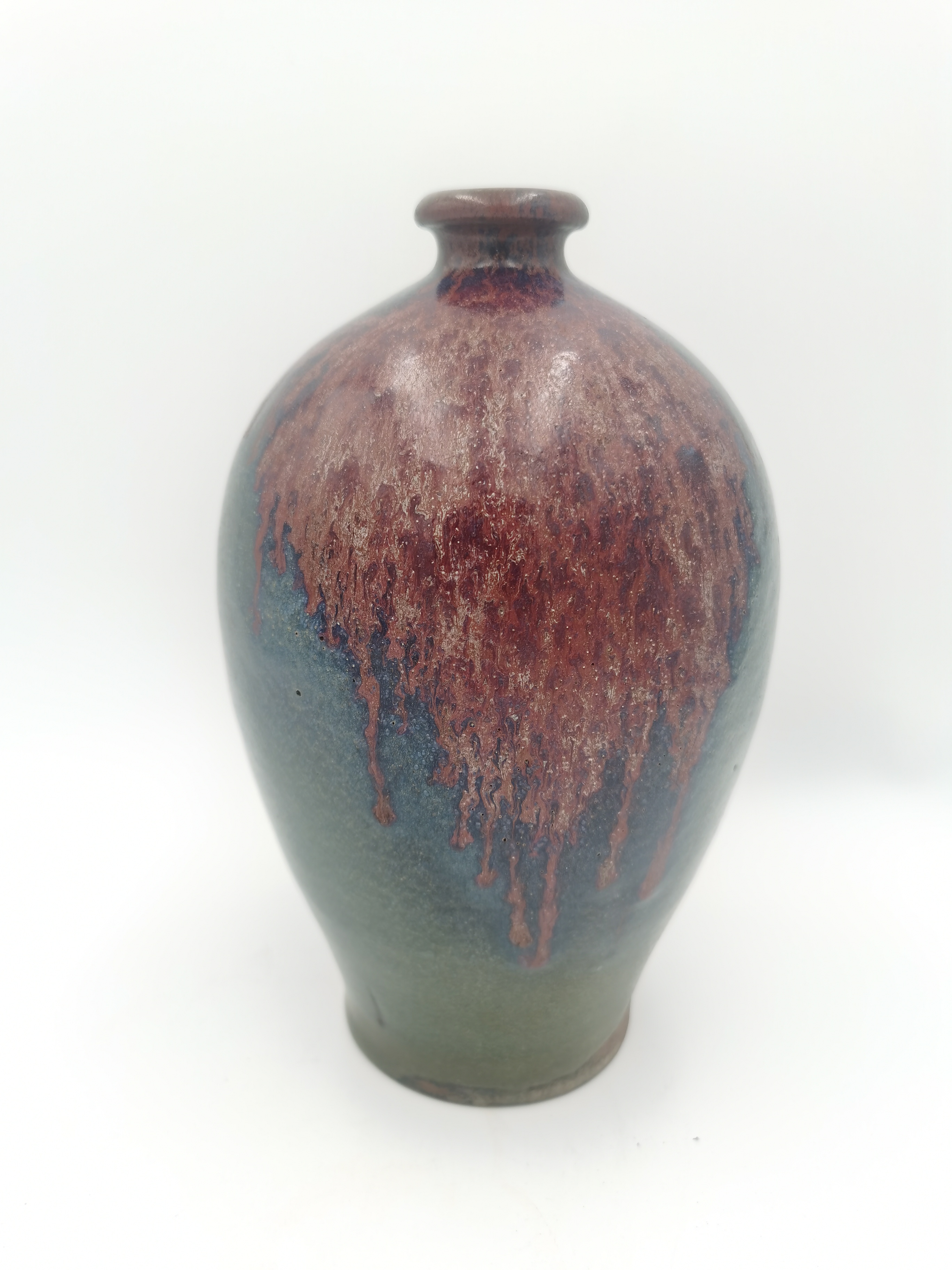 金代钧窑天蓝釉红斑梅瓶